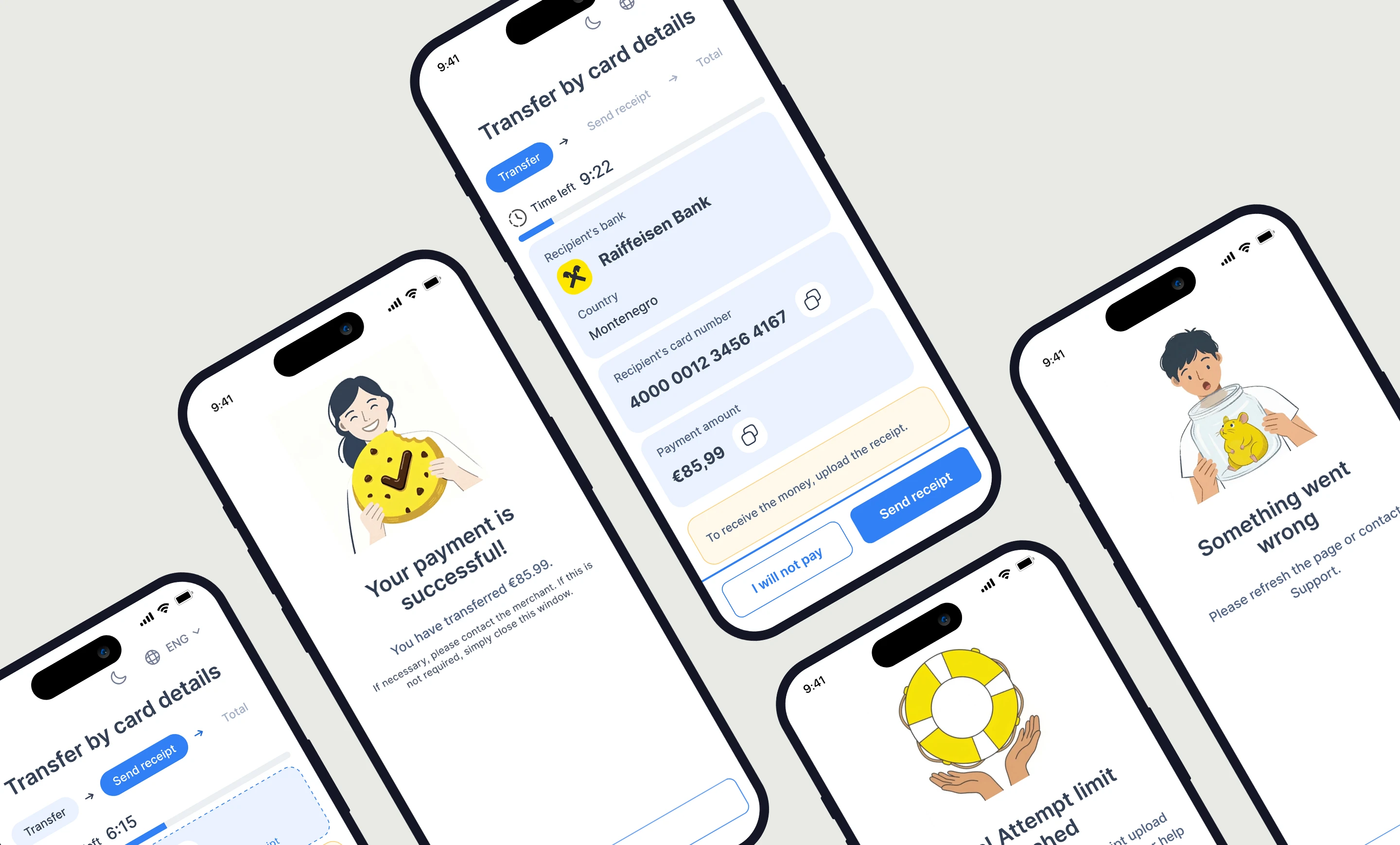 I introduced status feedback loops to boost user confidence and cut down on abandonment — like countdown timers that clarify time-sensitive windows, status badges for recipients, a clear progress indicator, and simple instructions on how to fix errors without losing money.